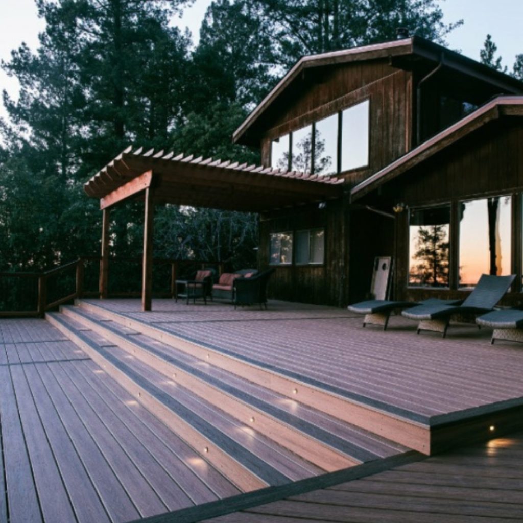 There’s nothing quite like the look and feel of real wood. Our custom decks use premium lumber to ensure that your deck looks great and holds up well. We pre-treat the wood to resist moisture, rot, warping, etc. When choosing materials, we consider the smallest details, such as the wood’s hue and the direction of the grain. While you must maintain real wood more diligently, it’s perhaps the best choice for a premium deck.